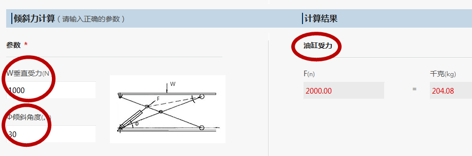 液壓缸選型-傾斜力計(jì)算